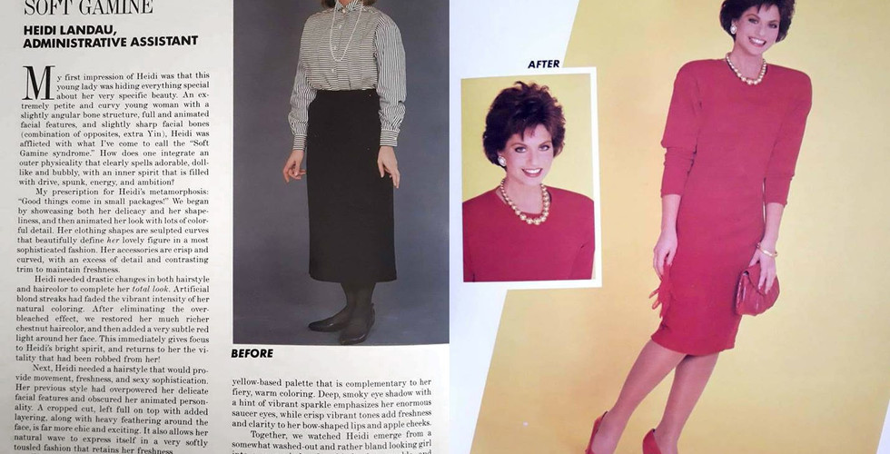 The situation with Larson's system is even more dire, since her types encompass both hormonal balance and personality, and Dvin Larson herself hasn't published any recommendations for them: everything that stylists "working according to Larson" sell is either Kibbe's recommendations for types, or Kibbe's recommendations plus her own tweaks.