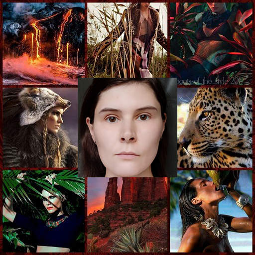 An interesting point emerges at this stage: dark colors and such expressive linearity often indicate a dominant dramatic component, but not in this case. Our heroine's features, despite their expressiveness, are so calm that even classic types look good (those without drama: Local and Refined). But she is, of course, framed most beautifully by the Sensual type. The natural component, expressed in the color and firm linearity, is complemented by romanticism in the expressive combination of lines, the pallor of the skin, and the depth of the eyes. The classical calm of the lines adds a certain weight and nobility to the figure, creating an enveloping image of a Greek fertility goddess or Mother Nature herself: wise and warm, fair and merciful, strong and sensual, majestic and natural, spiritual and earthly:
